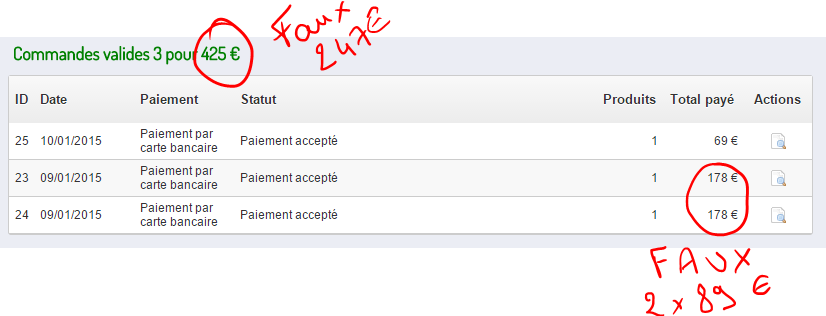 macilou Posted January 12, 2015 Share Posted January 12, 2015 Bonjour je rencontre un problème concernant la facturation et les stats lors des commandes en multi entrepôts (je ne suis pas en multiboutiques) le soucis est que lorsqu'un client commande plusieurs articles, ces derniers ne sont pas obligatoirement enlevés du stock du même entrepôt. Prestashop fait donc plusieurs factures dont une fait le cumul des autres... Sur une facture il y a mentionné "paiement par CB" et sur les autres "pas de paiement". Dans les stats, on retrouve le même problème. (voir les pièces jointes). D'où peut provenir ce problème ? Link to comment Share on other sites More sharing options...