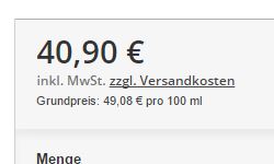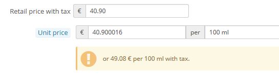 As you can see I have a retail price of 40.90 and I need a Unit Price of 40.90 per 100 ml.