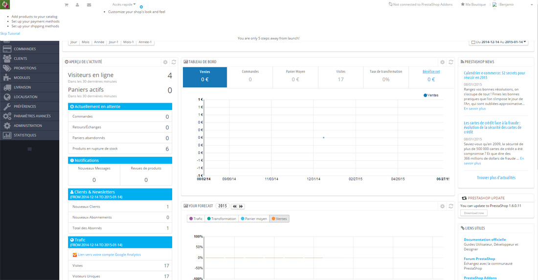LongBen Posted January 16, 2015 Share Posted January 16, 2015 Hi, I just installed Prestashop 1.6.0.9 on a new domain. Everything goes fine. Except when it's finished, i've got an issue on the back-office. There's this 5 steps tutorial displaying on the top of the screen and i just can't manage to skip it. I tried to reinstall everything and still got the same issue. It's very disturbing because I cannot navigate easily on my back office. I even can't click on the "Catalog" tab in the menu. How do I fix it ? Link to comment Share on other sites More sharing options...