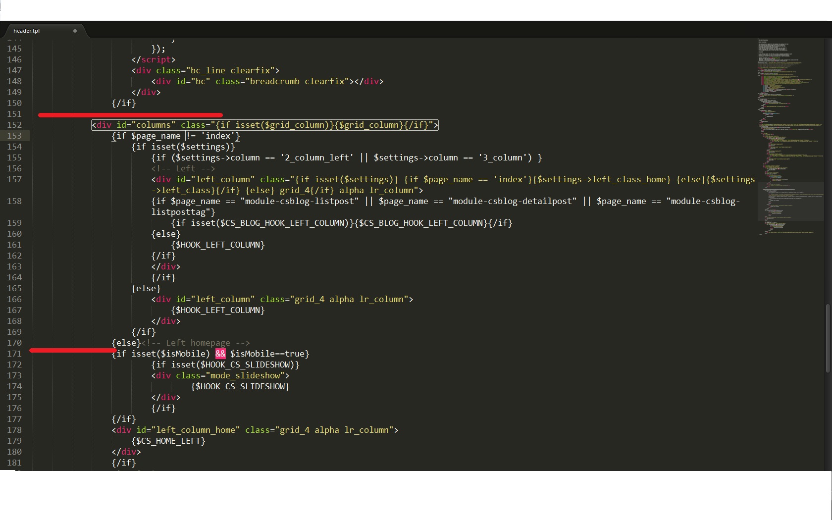 juampaa15 Posted January 20, 2015 Author Share Posted January 20, 2015 Hola! Gracias por responder! He probado lo que me dices y no me hace cambio alguno (que yo haya visto), adjunto una imagen del código donde (creo) que esta lo que se debe modificar. Yo se poco sobre programar por eso pruebo a ver si alguien puede ayudarme. Imagino que tengo que modificar algo del código entre las dos lineas rojas: He probado algunas cosas pero no consigo hacer lo que me interesa. En mi pagina de inicio, en la columna izquierda me aparece un modulo de categorías, que no funciona correctamente, que venia con el tema y junto con él aparece un modulo de ofertas, los demás módulos no aparecen, pero esto sólo pasa en inicio, en los demás sitios de la pagina si aparece la columna izquierda con todos los módulos que tengo y el modulo categorías que sí funciona. Ejemplo de inicio que aparece y no quiero: Ejemplo de inicio que me interesa que aparezca (es como aparece en cualquier otro sitio de la pagina) : Y lo mas aproximado que he conseguido es, como he comentado hace unos días, cuando en el código de la primera foto modifico el {if $page_name != 'index'} por {if $page_name == 'index'}. Que entonces se intercambian y en inicio me aparece la columna correcta y en los demás sitios de la web la columna incorrecta. A ver si alguien me puede ayudar! Muchas gracias! PD: Actualmente si entráis en la pagina no aparece columna izquierda en inicio, ya que la desactivo porque la pagina esta operativa y entran clientes. Link to comment Share on other sites More sharing options...