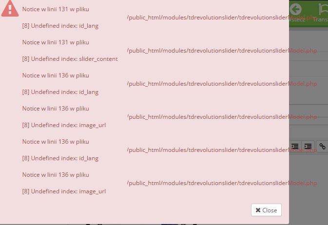 Notice w linii 131 w pliku /home/public_html/modules/tdrevolutionslider/tdrevolutionsliderModel.php