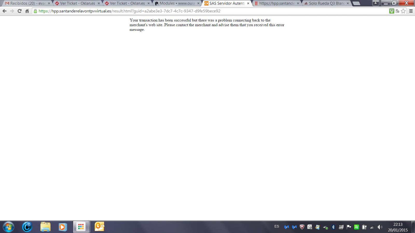 oddworldng Posted January 21, 2015 Share Posted January 21, 2015 Hola, Si, tiene la pinta de ser un problema de la pasarela de pago, así que tienes dos opciones: Buscas otro módulo o la última versión actualizada del que ya tienes y lo instalas (por si fuera algún problema del módulo) Te pones en contacto por email con los desarrolladores de la pasarela virtual y que te solucionen el problema. Yo recomiendo usar redsys, si la tienda está en España. Suelen dar un buen soporte y responder si tienes algún problema. Link to comment Share on other sites More sharing options...