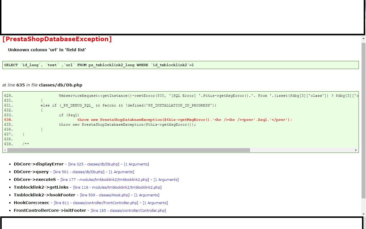 L. Masa Posted January 21, 2015 Share Posted January 21, 2015 Hai un modulo che si chiama tmblocklink2? prova a disabilitarlo o disinstallarlo può darsi che tu abbia una versione del modulo non adatta alla versione di prestashop Link to comment Share on other sites More sharing options...