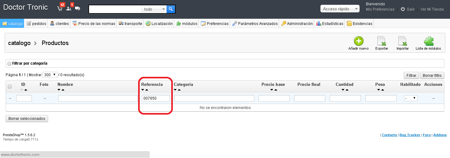 Así nos encontraría cualquiera de las posibilidades de referencia de nuestros productos para luego poder editar su ficha con comodidad.