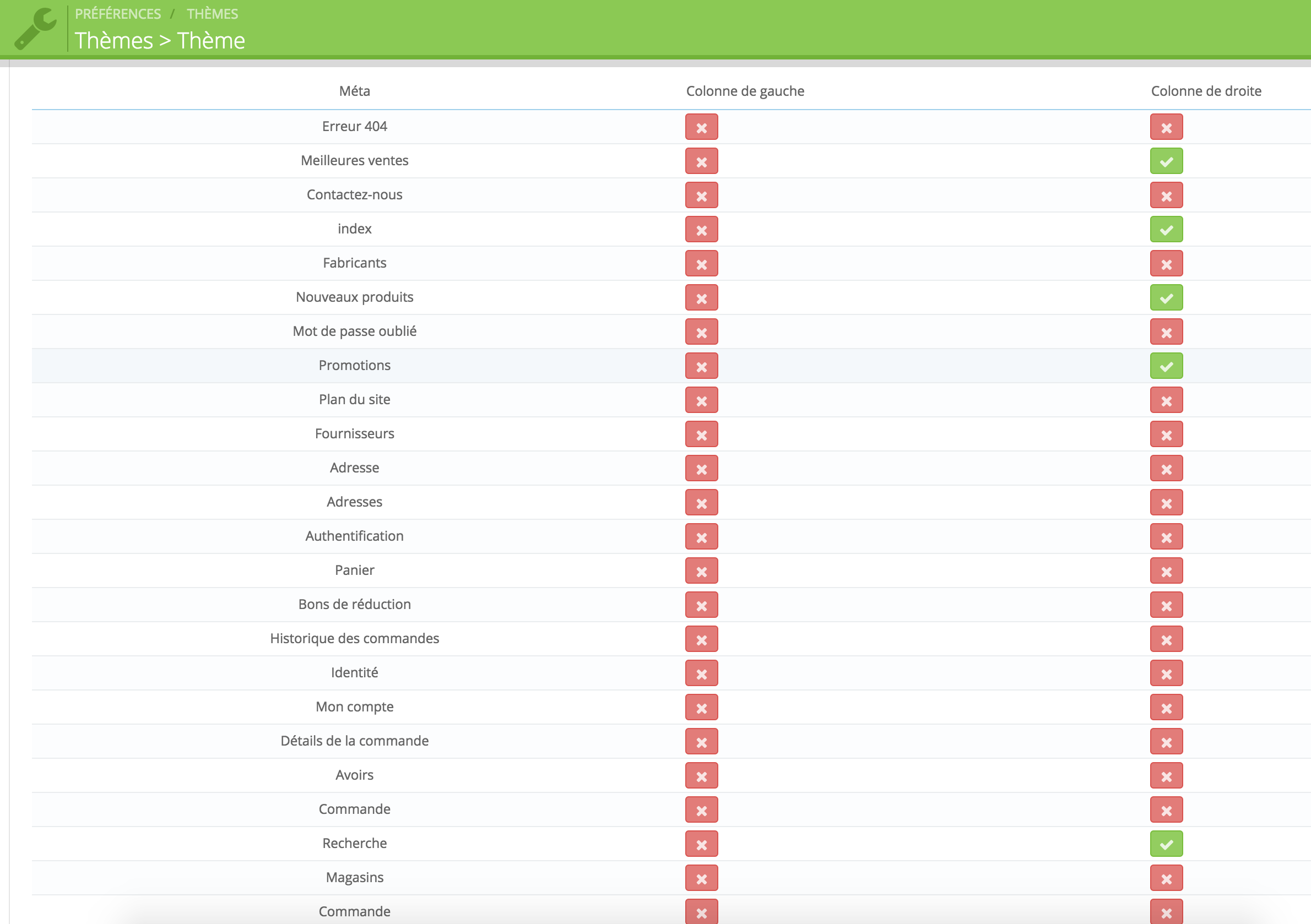 Thymotep Posted January 21, 2015 Author Share Posted January 21, 2015 Bonsoir, Merci pour la réponse, je n'avais pas regardé ces nouveaux paramètres, effectivement çà corrige en partie mon problème, mais dans la liste des pages, il n'y a pas de page "catégories" du coup j'ai bien la sidebar, mais pas sur les catégories de produits, une idée ? Thymotep Link to comment Share on other sites More sharing options...