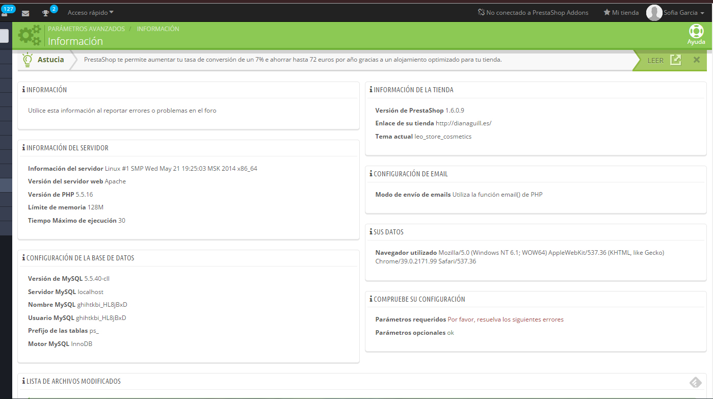 sofiagg Posted January 23, 2015 Share Posted January 23, 2015 (edited) Buenas, Cuando añadimos un nuevo producto y le damos a guardar y permanecer , o guardar, lo hace (guarda) pero la pantalla queda en blanco, por lo que solo nos quedan dos opciones: actualizar o retroceder. Si retrocedemos, no podemos proseguir a la actualización de campos. Y si actualizamos, me crea el mismo producto con otro ID distinto (me lo duplica) . Alguna ayuda o solución? (Adjunto la información de la aplicación) Y el debug error que me sale es el siguiente: Warning: Cannot modify header information - headers already sent by (output started at /home/ghihtkbi/public_html/config/defines.inc.php:1) in /home/ghihtkbi/public_html/classes/controller/FrontController.php on line 654Warning: Cannot modify header information - headers already sent by (output started at /home/ghihtkbi/public_html/config/defines.inc.php:1) in /home/ghihtkbi/public_html/classes/controller/FrontController.php on line 655Warning: Cannot modify header information - headers already sent by (output started at /home/ghihtkbi/public_html/config/defines.inc.php:1) in /home/ghihtkbi/public_html/classes/Tools.php on line 132 Edited January 23, 2015 by sofiagg (see edit history) Link to comment Share on other sites More sharing options...