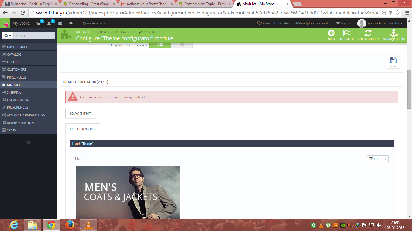 1stbuy Posted January 26, 2015 Share Posted January 26, 2015 Whenever I'm trying to upload images for my products in my website from the Admin Dashboard I can't upload any image.Even at the time of configurating theme I'm not able to upload any image because everytime it's throwing an error in the form 'An Error Occured During Image Upload'.we have implemented various codes even we have tried those ones which have been listen in Prestashop Forum but that's not working at all.Our hosting partner is Hostgator.We've tried to contact them and have explained them the problem.This's a concerning issue for us but with the previous prestashop Version we have not faced this type of problem.This problem is very much visible in the updated prestashop version.Please solve this problem immediately as we are out of sorts.Even we are attaching the snapshots so one can understand the issue. Link to comment Share on other sites More sharing options...