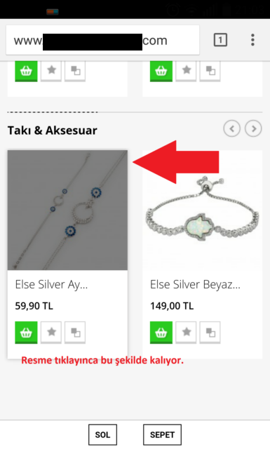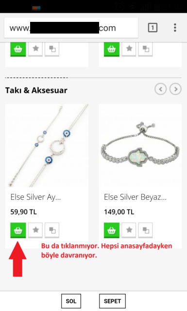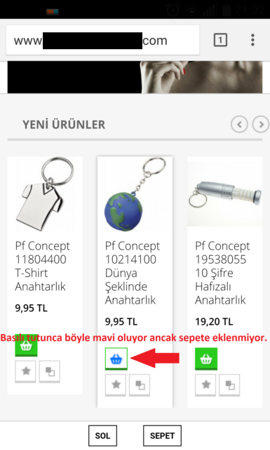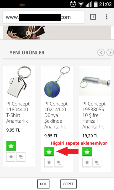 KorayCan Posted February 1, 2015 Author Share Posted February 1, 2015 (edited) Ayrıca dikkatimi çeken bir nokta var: cep telefonundan girdiğimde normalde sepete ekleyemediğim elbise, ayakkabı, takı gibi kategori yazıları altında görülen ürünlerin sepete ekle düğmesine sayfa tam yüklenmeden tıkladığımda ürünler düzgün bir şekilde sepete ekleniyor. Sanırım bu durum sayfanın tam yüklenip cihazı mobil olarak görmesinden sonra başlıyor. Yani mobilde ana sayfadaki sepete ekle, hızlı göz at, vs özellikler kilitleniyor gibi geldi. Edited February 1, 2015 by KorayCan (see edit history) Link to comment Share on other sites More sharing options...