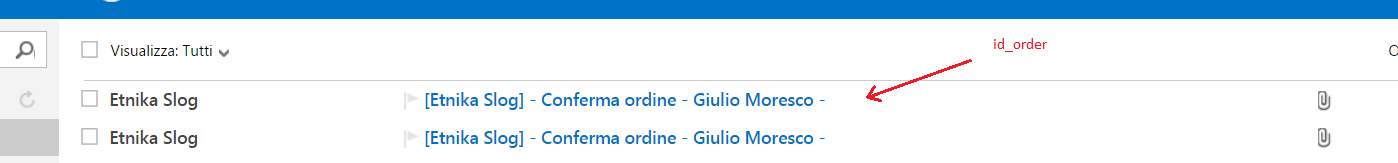 giuliopowa Posted January 28, 2015 Share Posted January 28, 2015 ciao,dovrei aggiungere id_order all'oggetto nella mail che riceve il cliente quando effettua un ordine, la conferma ordine ( order_conf)allora io ho già fatto questa modifica alle linee 256 - 257 del file mail.php nella cartella classes/ /* Create mail and attach differents parts */ $message = new Swift_Message('['.Configuration::get('PS_SHOP_NAME', null, null, $id_shop).'] '.$subject ."-" .$to_name ."-" .$id_order);così vedo :" nome del negozio - conferma ordine - nome del cliente - id_orderperò id_order non compare perchè prima non c'è una variabile che lo richiama. io ho provato a scrivere la variabile prima ma non ci riesco.ps: nell'immagine si capisce che manca id_order Link to comment Share on other sites More sharing options...