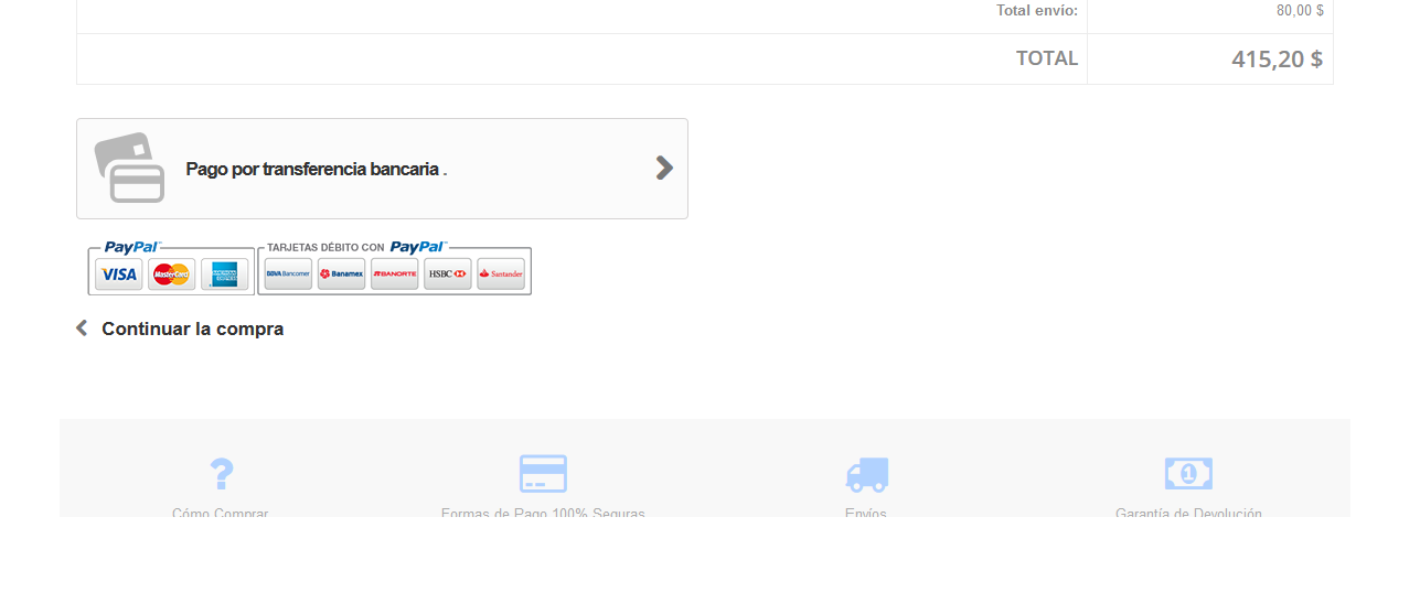 Salim.gassab Posted February 3, 2015 Author Share Posted February 3, 2015 Hola orlangrod, He intentado modificarlo pero sé hacerlo. no sé si me pedes ayudar porfa, le paso el .tpl de paypal <p class="payment_module"> <div id="paypal-express-checkout"> <form id="paypal-express-checkout-form" action="{$paypal_usa_action_payment}" method="post"> {if $paypal_usa_merchant_country_is_mx} <input id="paypal-express-checkout-btn" type="image" name="submit" src="{$module_dir}img/boton_terminar_compra.png" alt="" style="vertical-align: middle; margin-right: 10px;float: left;" /> <p style="line-height: 50px; float: left;">{l s='Da clic para confirmar tu compra con PayPal' mod='paypalusa'}</p> <div style="clear: both;"></div> {else} <input id="paypal-express-checkout-btn" type="image" name="submit" src="https://www.paypalobjects.com/{if $lang_iso == 'en'}en_US{else}{if $lang_iso == 'fr'}fr_CA{else}{if $lang_iso == 'es'}es_ES{else}en_US{/if}{/if}{/if}/i/bnr/horizontal_solution_PPeCheck.gif" alt="" style="vertical-align: middle; margin-right: 10px;" /> {l s='Complete your order with PayPal Express Checkout' mod='paypalusa'} {/if} </form> </div> </p> {else} {if isset($paypal_usa_express_checkout_no_token) && $paypal_usa_express_checkout_no_token} <p class="payment_module"> AQUÍ dnd he puesto la clase de bankwire pero me ha añadido un boton como el de la trasndeferencia {/if} <div id="paypal-express-checkout" > <form id="paypal-express-checkout-form" action="{$paypal_usa_action}" method="post" onsubmit="$('#paypal_express_checkout_id_product_attribute').val($('#idCombination').val()); $('#paypal_express_checkout_quantity').val($('#quantity_wanted').val());"> {if $page_name == 'product' && isset($smarty.get.id_product)} <input type="hidden" id="paypal_express_checkout_id_product" name="paypal_express_checkout_id_product" value="{$smarty.get.id_product|intval}" /> <input type="hidden" id="paypal_express_checkout_id_product_attribute" name="paypal_express_checkout_id_product_attribute" value="0" /> <input type="hidden" id="paypal_express_checkout_quantity" name="paypal_express_checkout_quantity" value="0" /> {/if} {if $paypal_usa_merchant_country_is_mx} <input id="paypal-express-checkout-btn-product" type="image" name="submit" src="{if isset($paypal_usa_express_checkout_no_token) && $paypal_usa_express_checkout_no_token}{$module_dir}/img/accpmark_tarjdeb_mx.png{else}{$module_dir}/img/express_checkout_mx.png{/if}" alt="" style="float: left;"/> {else} <input id="paypal-express-checkout-btn-product" type="image" name="submit" src="{if isset($paypal_usa_express_checkout_no_token) && $paypal_usa_express_checkout_no_token}https://www.paypalobjects.com/{if $lang_iso == 'en'}en_US{else}{if $lang_iso == 'fr'}fr_CA{else}{if $lang_iso == 'es'}es_ES{else}en_US{/if}{/if}{/if}/i/bnr/horizontal_solution_PPeCheck.gif{else}https://www.paypal.com/{if $lang_iso == 'en'}en_US{else}{if $lang_iso == 'fr'}fr_CA{else}{if $lang_iso == 'es'}es_ES{else}en_US{/if}{/if}{/if}/i/btn/btn_xpressCheckout.gif{/if}" alt="" /> {/if} </form> </div> <div style="clear: both;"></div> {if isset($paypal_usa_express_checkout_no_token) && $paypal_usa_express_checkout_no_token} </p> {/if} {if !isset($paypal_usa_from_error)} <script type="text/javascript"> {literal} $(document).ready(function() { {/literal} {if $page_name == 'product'} {literal} $('#paypal-express-checkout-form').insertAfter('#buy_block'); $('#paypal-express-checkout-btn-product').css('float', 'left'); $('#paypal-express-checkout-btn-product').css('margin-top', '-30px'); {/literal} {else} {if !isset($paypal_usa_express_checkout_no_token) || !$paypal_usa_express_checkout_no_token} {literal} $('#paypal-express-checkout-btn-product').hide(); $('#paypal-express-checkout').insertBefore('.cart_navigation .button_large'); $('#paypal-express-checkout-btn-product').css('float', 'right'); $('#paypal-express-checkout-btn-product').css('margin-right', '5px'); $('.cart_navigation .button_large').css('margin-left', '5px'); $('#paypal-express-checkout-btn-product').show(); {/literal} {/if} {/if} {literal} }); {/literal} </script> {/if}{/if} Link to comment Share on other sites More sharing options...