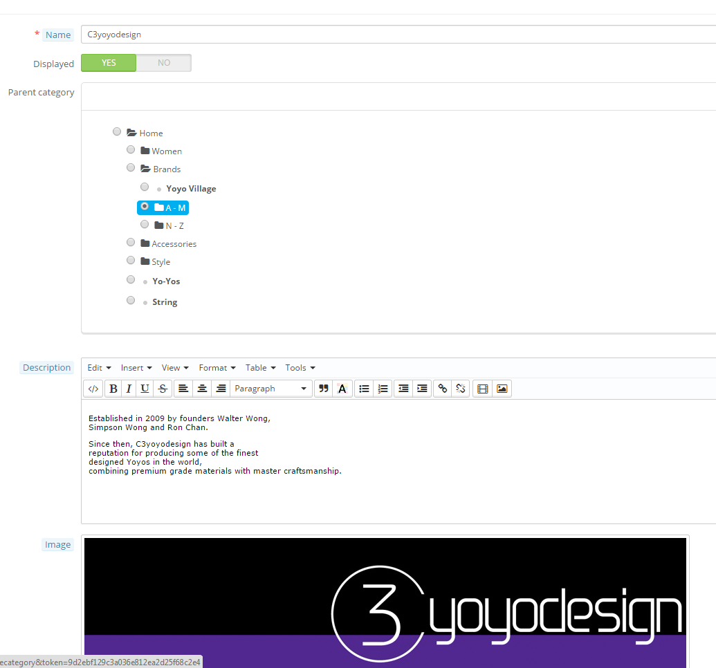 In this example, the category is C3yoyodesign. In the back-end, I have put in the category name, description and image to get this looking as it does above.