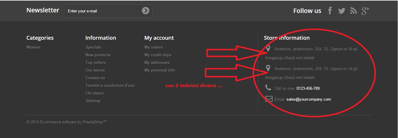 Buongiorno a tutti ... o un problema con il modulo block contact info  ...dovrei inserire 2 indirizzi per il negozio ... dal file blockcontactinfo.tpl o creato la funzione per vedere l indirizzo doppio.... , adesso mi mancherebbe la parte php del modulo ecc .... x inserire 2 indirzzi differenti... qualcuno puo darmi un aiuto ? grazie mille ..