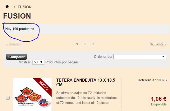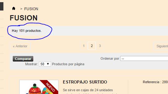 polu Posted February 1, 2015 Share Posted February 1, 2015 Hola, Tengo prestashop 1.5.6.2, cuando pincho en cualquier categoría y me aparece la lista de productos, en cuanto paso a la pagina siguiente de la misma categoría, se mi pierden varios productos, por ejemplo: Tengo una categoría con 109 productos y la paginación la tengo para que me muestre 50 productos por página, cuando pincho en dicha categoría me dice que tengo 109 productos: y cuando pincho en la página Nº 2, se me pierden 8 productos y me dice que tengo 101 productos: ¿Alguien sabe porqué pasa esto y si tiene solución? Saludos Link to comment Share on other sites More sharing options...
