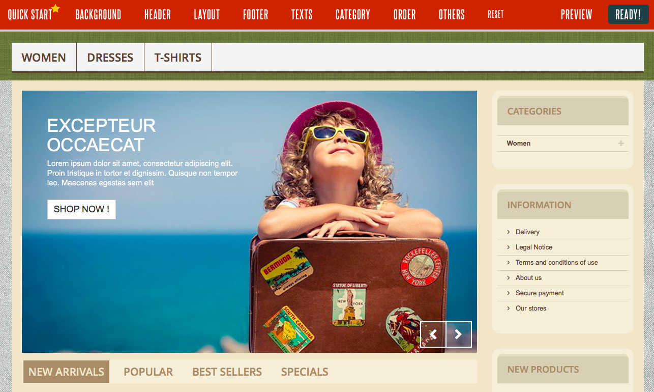 Andrej Stas Posted April 22, 2016 Share Posted April 22, 2016 Hi, dont understand, how to use hooks, what I need to do is place category block near image slider (main page) instead of theme configuration images (By default they are next to image slider) Hi Gramas, you can do this in just a few clicks with Presta-theme-maker.com, I made a very quick design for a demonstration (picture attached) http://presta-theme-maker.com/ Cheers, Andrej Link to comment Share on other sites More sharing options...