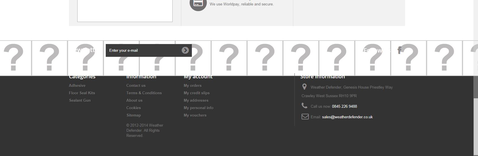 peter433 Posted February 2, 2015 Share Posted February 2, 2015 Hello, I have Question mark error images on homepage? very strange any help would be appriated. See www.weatherdefender.co.uk Also see attach file screenshot Regards Peter Link to comment Share on other sites More sharing options...