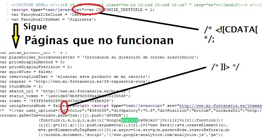Me he dado cuenta del problema porque Analytics no me mostraba las visitas a dos páginas (que haya detectado por el momento).