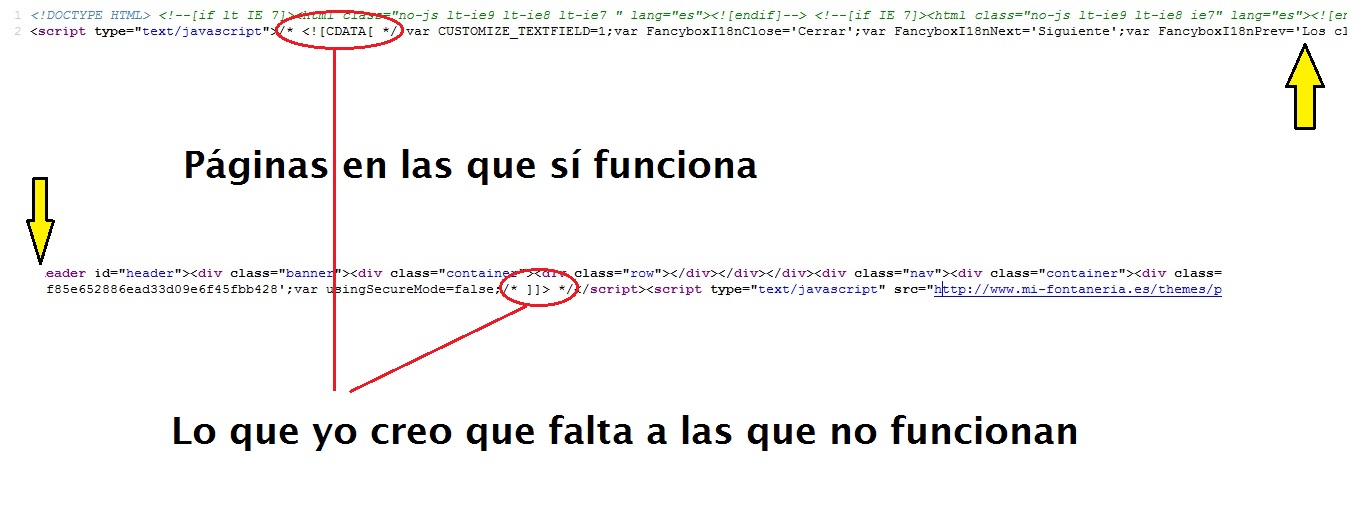 Buscando cual puede ser el problema he ido a mirar el código de estas dos páginas y me he encontrado con que es distinto a las del resto.