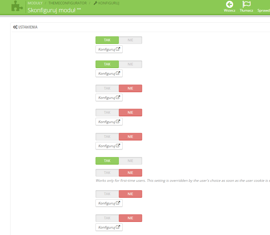 Przed dokonaniem zmiany w Tłumaczeniu to wszystko było widoczne.