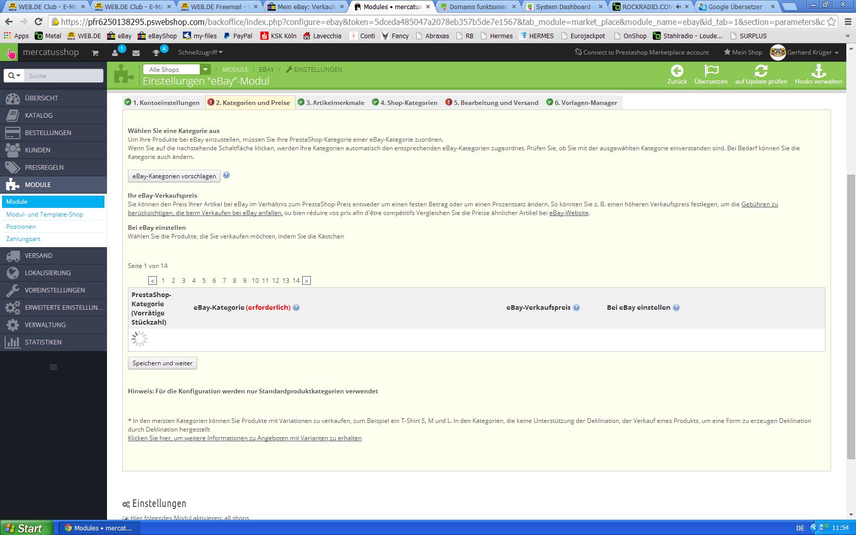 mercatus Posted February 4, 2015 Share Posted February 4, 2015 Hallo, Ich benutze die Version 1.6.0.11 (cloud) Die eBay-Modul nicht funktioniert. Die 2. Seite "Kategorien und Preise" blockiert. Das Laden der Presta Kategorien funktioniert nicht. Link to comment Share on other sites More sharing options...