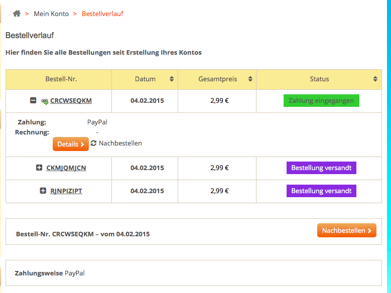 also in der Bestellhistorie wird in der Liste ja angezeigt, ob es einen Download gibt. Klickt man aber drauf, passiert bei mir gar nichts. Lasse ich mir die Bestellung dann anzeigen, gibt es nirgendwo den Link.