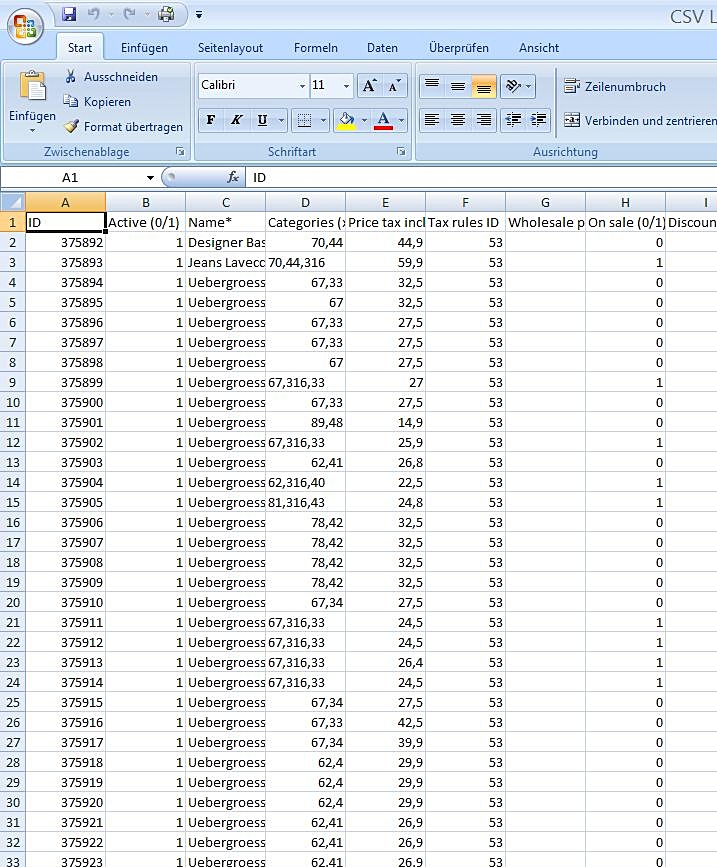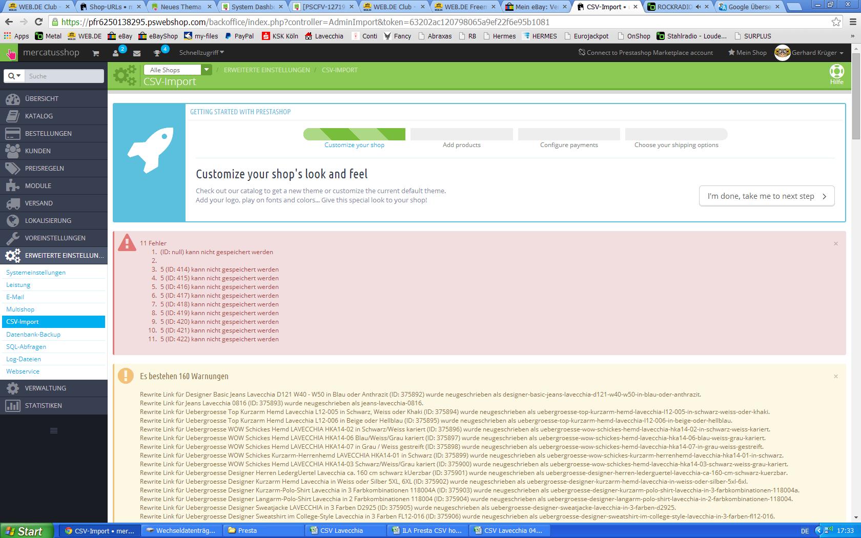 Ich versuche Artikel per CSV-Datei hochzuladen.