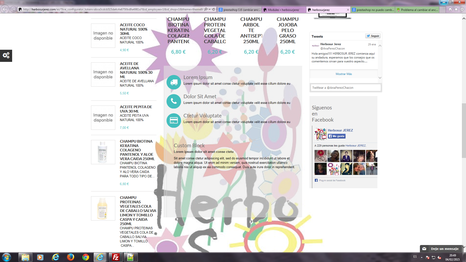 tudeporteysalud Posted February 4, 2015 Share Posted February 4, 2015 (edited) tengo un problema ya no tengo mas remedio que peguntaros a ver si alguien sabe el porque ... E caso es que estoy con una WEB en prestashop 1.6, y he habilitado las tres columnas, el problema viene que veo que el bloque de información CMS pe aparece distorsionado, y me he dado cuenta que al modificar el ancho del modulo de Facebook que tengo en la columna de la derecha es cuando el bloque de la columna central se modifica solo y jugando con el "pading-right" del modulo Facebook cambio el de información .... y a no tengo ni idea de porque.... A ver si alguien tiene idea.. adjunto imagen del,problema.... Gracias por vuestra ayuda... Edited February 4, 2015 by tudeporteysalud (see edit history) Link to comment Share on other sites More sharing options...