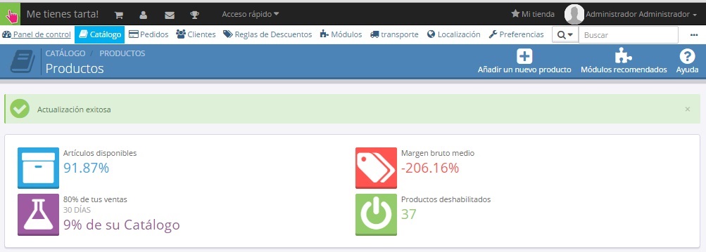 Lebasi Posted February 5, 2015 Share Posted February 5, 2015 Hola, A ver si alguien puede decirme cómo calcula Prestashop el Margen Bruto Medio que muestra en el backoffice en el apartado Productos. He revisado todos los productos, precios y costes pero sigo sin entender por qué me devuelve un -206,16% Alguna sugerencia? Adjunto pantallazo. Link to comment Share on other sites More sharing options...