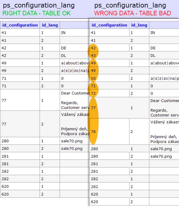 For compare wrong and repaired good data table check this image: