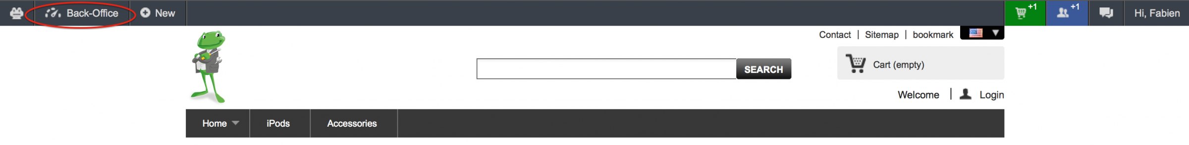 Lorsque vous serez connecté à votre back office, une barre d'outils va apparaître sur votre front office de la même manière que celle de Wordpress.
