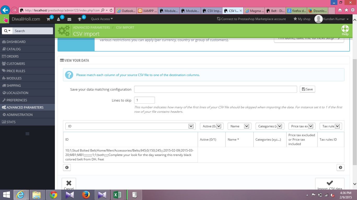 kundan1947 Posted February 10, 2015 Share Posted February 10, 2015 Hi i am facing some problem while uploading bulk products using csv file. As you know, values for different columns must be end with a semicolon i.e ; and multiple values in one column are separated with a comma i.e , Now the problem i'm facing is that when i use comma to separate multiple values in one column (eg red,blue,white;), and then upload that csv file in presatshop, all values comes in one column. And i'm unable to proceed. I'm attaching image of this problem. Please help me to solve this problem. Please tell me how to solve and why it is not taking commas. 2nd Query: i also want to use any other special character to seprate values instead of comma. Is this possible ? if yes tell me how. Link to comment Share on other sites More sharing options...