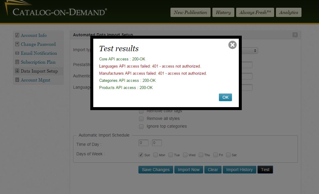 bsqinc Posted February 10, 2015 Share Posted February 10, 2015 (edited) Hi, I am trying to use catalog-on-demand.com to create e-catalog by importing products information from my Prestashop. while I am using Data import setup, Language API and Manufacturers API access failed. Does any one know how do I solve this? Here is the instruction document they have on the website. http://www.catalog-on-demand.com/print-catalog-pages-from-prestashop-content#how-to-import Edited February 11, 2015 by bsqinc (see edit history) Link to comment Share on other sites More sharing options...