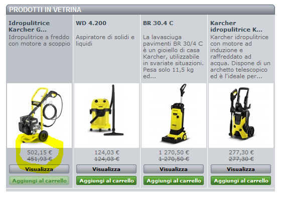 sirelancillotto Posted November 18, 2011 Share Posted November 18, 2011 Eccomi di nuovo! mi sbagliavo, in realtà il tuo codice funziona alla grande come puoi vedere qui sotto! Intanto ho una domanda: i prezzi sono tutti barrati, a prescindere che siano scontati o meno? ...in altre parole... in home devo mettere soltanto i prodotti scontati? Utile il tuo codice... grazie.. ma in realtà quello che vorrei ottenere è il prezzo sbarrato nelle pagine dove c'è la lista dei prodotti come nel sito spaccaprezzi qui sotto: . Nel mio sito non c'è: E' necessaria una modifica del file \themes\prestashop\product-list.tpl oppure si può ottenere settando opportunamente da BO ? Link to comment Share on other sites More sharing options...