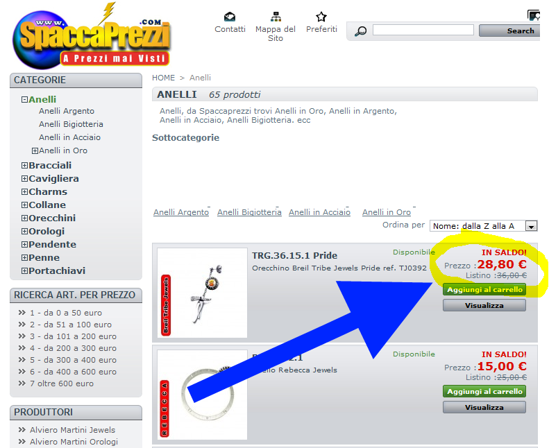 Nsfr750 Posted November 18, 2011 Share Posted November 18, 2011 Intanto ho una domanda: i prezzi sono tutti barrati, a prescindere che siano scontati o meno? ...in altre parole... in home devo mettere soltanto i prodotti scontati? io questa modifica l'ho fatta per un cliente che voleva i prezzi vecchi barrati e quelli scontati in rosso (piu' in grande) ovviamente bisogna modificare anche il relativo css. in pratica usa il modulo Home Featured solo per i prodotti scontati (malgrado io gli abbia messo anche l'apposito modulo) Utile il tuo codice... grazie.. ma in realtà quello che vorrei ottenere è il prezzo sbarrato nelle pagine dove c'è la lista dei prodotti come nel sito spaccaprezzi qui sotto: E' necessaria una modifica del file \themes\prestashop\product-list.tpl oppure si può ottenere settando opportunamente da BO ? devi modificare il product-list.tpl Link to comment Share on other sites More sharing options...