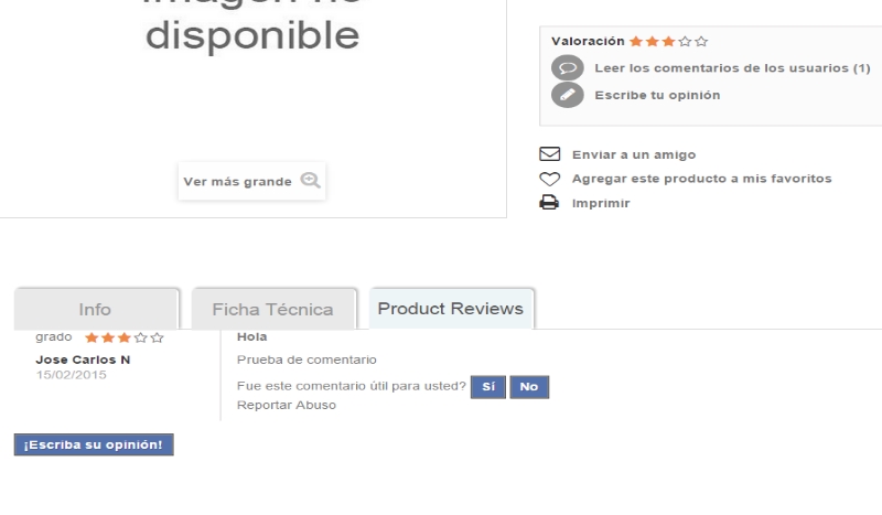 Karlos123 Posted February 15, 2015 Share Posted February 15, 2015 (edited) Hola Amig@´s el otro día conseguí poner pestañas en el apartado de la descripción de los productos desde esta web http://mypresta.eu/en/art/prestashop-16/product-tabs.html , pues bien todo funciona bien,hasta que he decidido instalar el modulo de comentarios de los productos,el caso es que si se pincha directamente en la pestaña "Product Reviews" si aparecen los comentarios,pero si pincho en el enlace del box "Leer los comentarios de los usuarios" no aparece nada,alguien sabría decirme que estoy haciendo mal? Os dejo unas fotos a ver si os aclara mi explicación,muchas gracias por vuestro tiempo. Edited February 15, 2015 by Karlos123 (see edit history) Link to comment Share on other sites More sharing options...