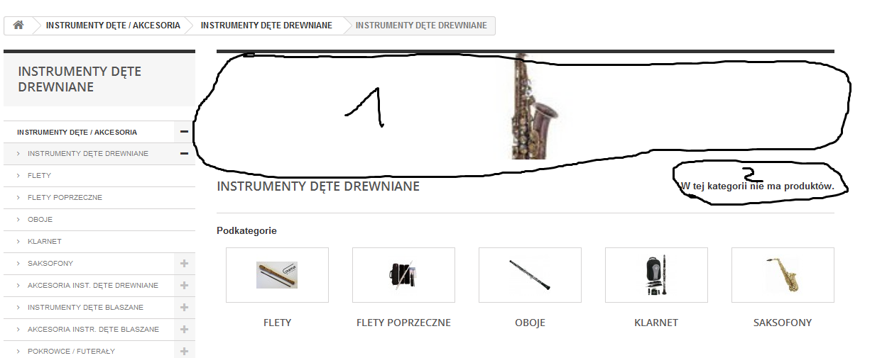 0 Yabber Posted February 16, 2015 Share Posted February 16, 2015 1. W katalogu szablonu edutujesz category.tpl. Usuń kod: <!-- Category image --> <div class="content_scene_cat_bg"{if $category->id_image} style="background:url({$link->getCatImageLink($category->link_rewrite, $category->id_image, 'category_default')|escape:'html':'UTF-8'}) 0 top no-repeat; background-size:contain; min-height:{$categorySize.height}px;"{/if}> {if $category->description} <div class="cat_desc"> <span class="category-name"> {strip} {$category->name|escape:'html':'UTF-8'} {if isset($categoryNameComplement)} {$categoryNameComplement|escape:'html':'UTF-8'} {/if} {/strip} </span> {if Tools::strlen($category->description) > 350} <div id="category_description_short" class="rte">{$description_short}</div> <div id="category_description_full" class="unvisible rte">{$category->description}</div> <a href="{$link->getCategoryLink($category->id_category, $category->link_rewrite)|escape:'html':'UTF-8'}" class="lnk_more">{l s='More'}</a> {else} <div class="rte">{$category->description}</div> {/if} </div> {/if} </div> 2. W katalogu szablonu edutujesz category-count.tpl. Usuń kod: {l s='There are no products in this category.'} Link to comment Share on other sites More sharing options...