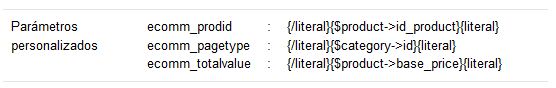 guischimidt Posted February 18, 2015 Share Posted February 18, 2015 Use o seguinte Codigo no seu footer.tpl exatamente antes do </body>: <script type="text/javascript"> var google_tag_params = { {if $page_name == 'index'} ecomm_pagetype: 'home' {elseif $page_name == 'search'} ecomm_pagetype: 'searchresults' {elseif $page_name == 'category'} ecomm_pagetype: 'category' {elseif $page_name == 'order-opc'} {assign var=products value=$cart->getProducts()} {$products_list = array()} {foreach $products as $product} {assign var=tmp value=array_push($products_list,$product.id_product)} {/foreach} ecomm_pagetype: 'cart', ecomm_prodid: [{implode(",",$products_list)}], ecomm_totalvalue: {$cart->getOrderTotal(true)} {elseif $page_name == 'order-confirmation'} ecomm_pagetype: 'purchase' {elseif $page_name == 'product'} ecomm_pagetype: 'product', ecomm_prodid: '{$product->id|intval}', ecomm_totalvalue: '{$product->getPrice(true, $smarty.const.NULL, $priceDisplayPrecision)}' {else} ecomm_pagetype: 'other' {/if} }; </script> <script type="text/javascript"> /* <![CDATA[ */ var google_conversion_id = XXXXXXXX; var google_custom_params = window.google_tag_params; var google_remarketing_only = true; /* ]]> */ </script> <script type="text/javascript" src="https://www.googleadservices.com/pagead/conversion.js"> </script> <noscript> <div style="display:inline;"> <img height="1" width="1" style="border-style:none;" alt="" src="//googleads.g.doubleclick.net/pagead/viewthroughconversion/XXXXXXX/?value=0&guid=ON&script=0"/> </div> </noscript> Link to comment Share on other sites More sharing options...