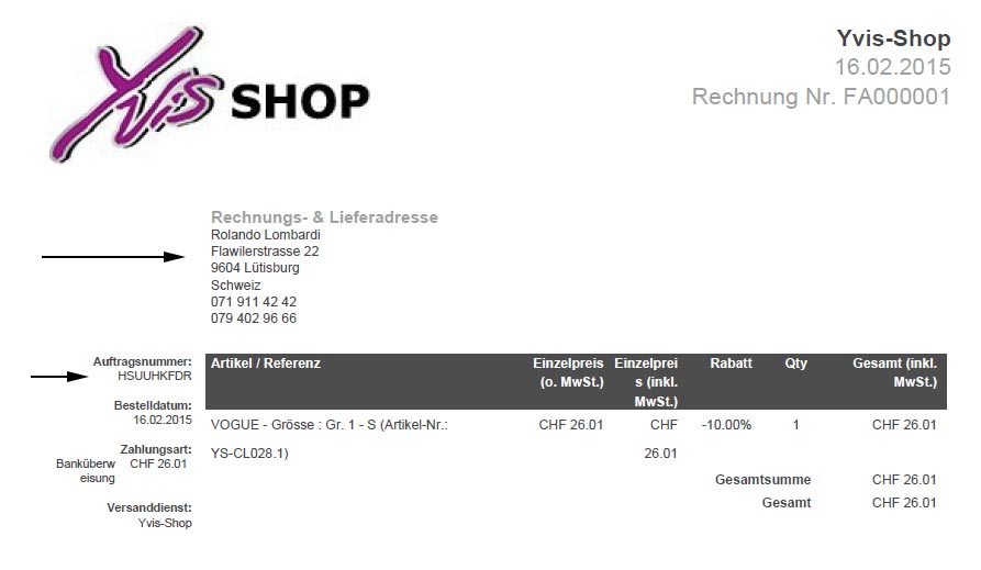 Birel34 Posted February 16, 2015 Share Posted February 16, 2015 (edited) Hallo an Alle Ich bin neu und finde die PRESTA SHOP Lösung soweit sehr gut. Nun würde ich gerne beim Lieferschein und bei der Rechnung das Adressfeld anpassen. Wenn ich jetzt, so wie es jetzt ist einen lieferschein oder einen rechnung generiere, sehen diese so wie im angefügten Bild aus. Das Adressfeld erscheint im Fester der Versandtasche und man sollte ja nur den Namen und die Anschrift sehen können. Beispiel: Rolando LombardiFlawilerstrasse 229604 Lütisburg und nicht mit "Rechnung- & Leferadresse" oberhalb des Namen des Kunden und auch nicht die Telefonnummer. diese Punkte können wo anderst stehen. Freue mich auf jede Antwort und Anleitung, damit ich es anpassen kann. Besten dank und gute Nacht. Herzliche Grüsse Rolando Edited February 23, 2015 by Birel34 (see edit history) Link to comment Share on other sites More sharing options...