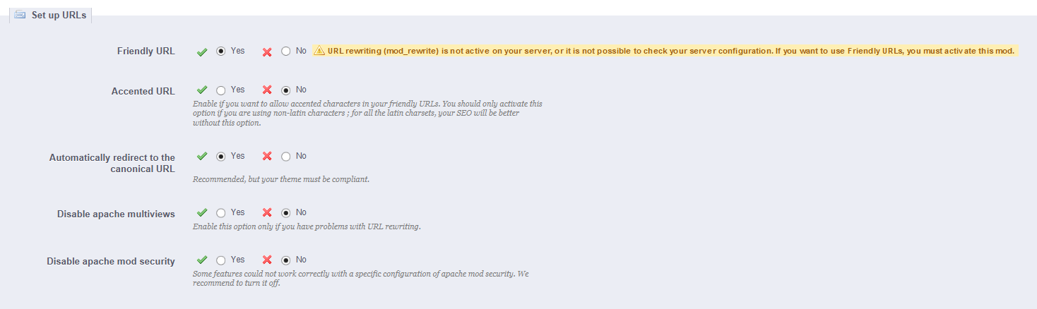 remindworks Posted February 18, 2015 Author Share Posted February 18, 2015 (edited) I entered in the code right at the top of the .htaccess file, but it's still not working. I uploaded a screenshot of my SEO URL settings if that helps. I also forgot to mention that, although I reviewed the link you sent and it looks like settings meant for a version of Prestashop that's higher than mine. I've attached a picture showing what SEO options I have for products. Finally, the tutorial doesn't seem to tell me what's the best way to add a canonical URL for the homepage. If it does and I missed it, I'm sorry. Edited February 19, 2015 by remindworks (see edit history) Link to comment Share on other sites More sharing options...
