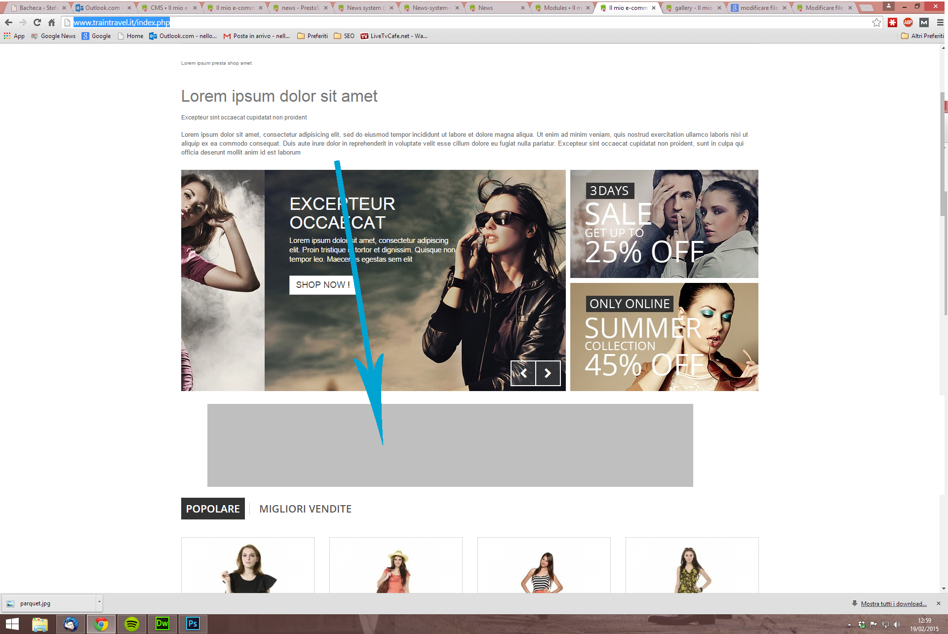 Nello83 Posted February 19, 2015 Share Posted February 19, 2015 Hi guys! I'm not very expert with Prestashop but I'm trying to learn something especially in developing themes I have a problem: I want to move the "Editor of the Home Page" under the "image slider in the home page" I tried in Modules-Positions...but is impossibile Can you help me? You can see an example of what I'd like to do in the attached file Link to comment Share on other sites More sharing options...