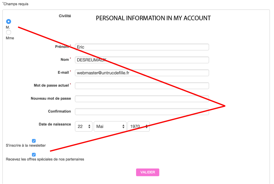 Emilie BREANT Posted February 19, 2015 Share Posted February 19, 2015 Bonjour à tous, Je rame depuis plusieurs jours sur un problème d'alignement des boutons radio et des boutons "newsletter" sur la page mes informations personnelles du bloc "Mon Compte". Je suis sous PS 1.6.0.9 et thème Buyshop theme. Je ne suis pas developpeur et ne trouve pas les modifications a operer ? Merci d'avance pour votre aide. Eric @ untrucdefille. Link to comment Share on other sites More sharing options...