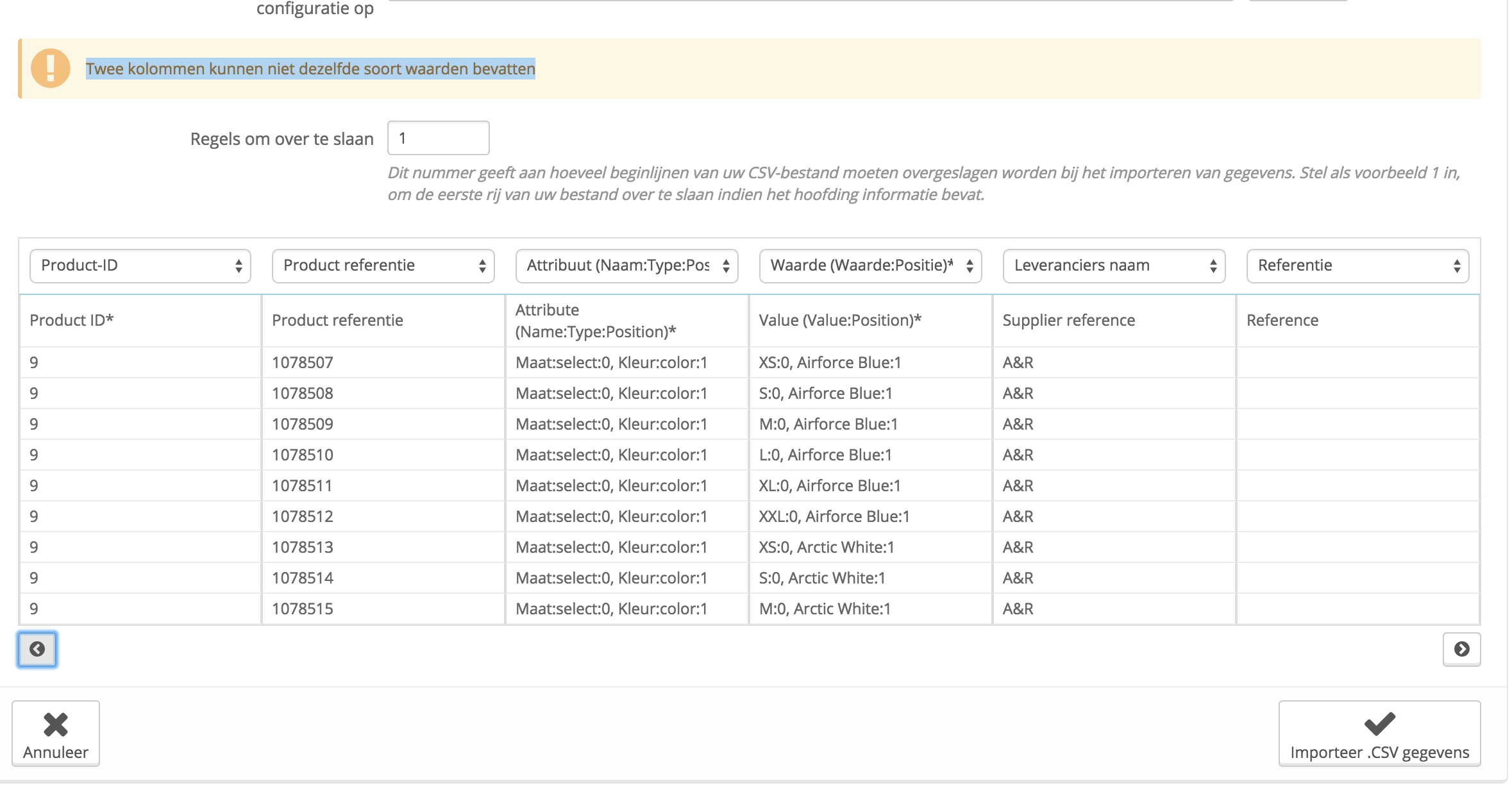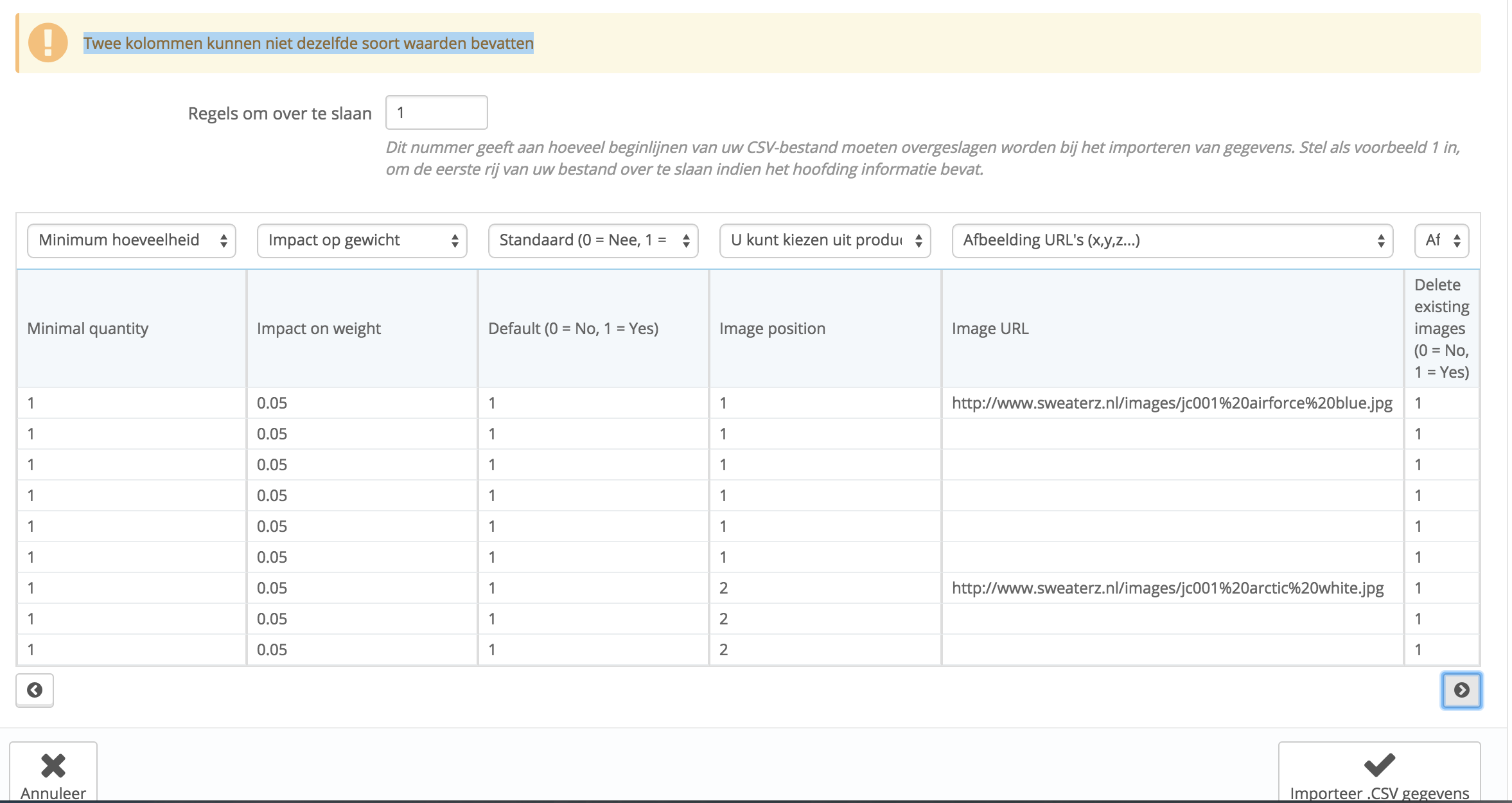 vverloop Posted February 20, 2015 Share Posted February 20, 2015 (edited) Ik probeer een CSV import te doen, deze wil niet starten want krijg de volgende melding: Twee kolommen kunnen niet dezelfde soort waarden bevatten Wat houd dit in? Wat doe ik fout? Edited February 20, 2015 by vverloop (see edit history) Link to comment Share on other sites More sharing options...