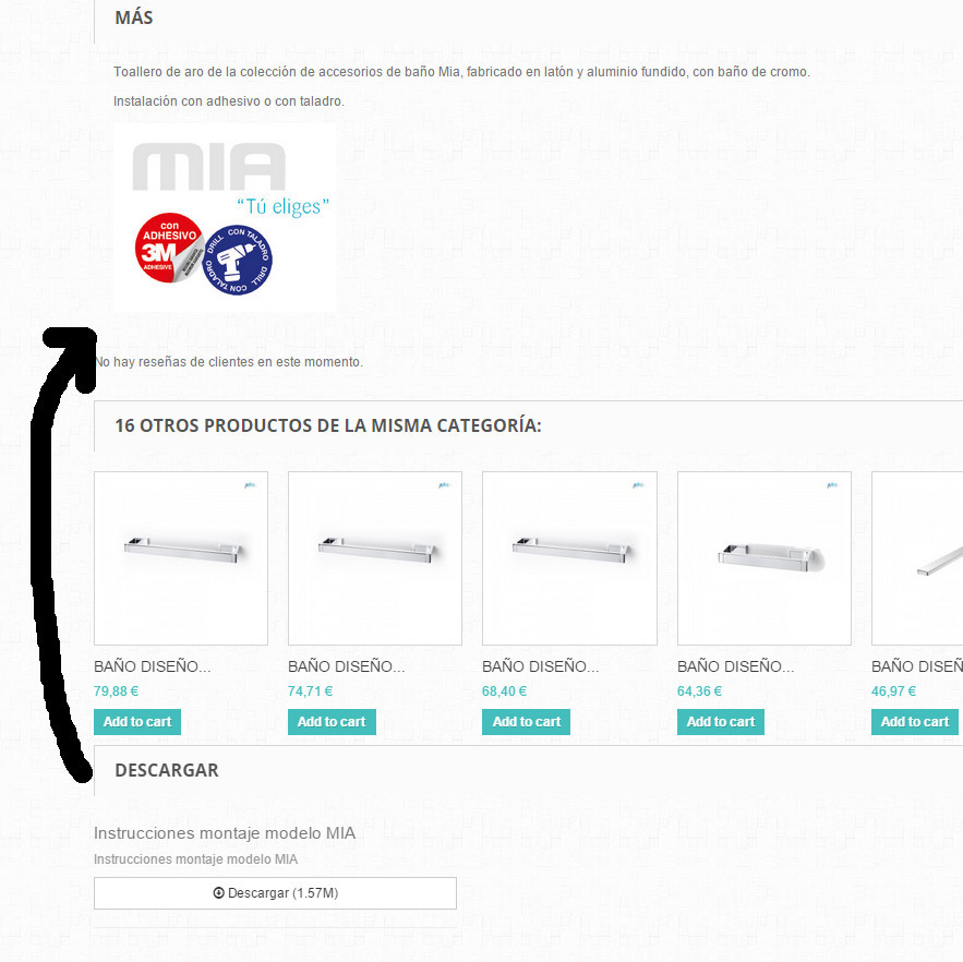 ide41 Posted March 22, 2015 Share Posted March 22, 2015 It doesn't work. The attachment link appears at the end of the page. I'm using Prestashop 1.6.0.13 and the bootstrap theme. My code on products.tpl file is (before the changes): "... <!--end Accessories --> {/if} {if isset($HOOK_PRODUCT_FOOTER) && $HOOK_PRODUCT_FOOTER}{$HOOK_PRODUCT_FOOTER}{/if} {if isset($attachments) && $attachments} <!--Download --> <section class="page-product-box"> <h3 class="page-product-heading">{l s='Download'}</h3> {foreach from=$attachments item=attachment name=attachements} {if $smarty.foreach.attachements.iteration %3 == 1}<div class="row">{/if} <div class="col-lg-4"> <h4><a href="{$link->getPageLink('attachment', true, NULL, "id_attachment={$attachment.id_attachment}")|escape:'html':'UTF-8'}">{$attachment.name|escape:'html':'UTF-8'}</a></h4> <p class="text-muted">{$attachment.description|escape:'html':'UTF-8'}</p> <a class="btn btn-default btn-block" href="{$link->getPageLink('attachment', true, NULL, "id_attachment={$attachment.id_attachment}")|escape:'html':'UTF-8'}"> <i class="icon-download"></i> {l s="Download"} ({Tools::formatBytes($attachment.file_size, 2)}) </a> <hr /> </div> {if $smarty.foreach.attachements.iteration %3 == 0 || $smarty.foreach.attachements.last}</div>{/if} {/foreach} </section> <!--end Download --> {/if} <!-- description & features --> {if (isset($product) && $product->description) || (isset($features) && $features) || (isset($accessories) && $accessories) || (isset($HOOK_PRODUCT_TAB) && $HOOK_PRODUCT_TAB) || (isset($attachments) && $attachments) || isset($product) && $product->customizable} {if isset($product) && $product->customizable} <!--Customization --> ..." I attached and image. Thanks. Link to comment Share on other sites More sharing options...
