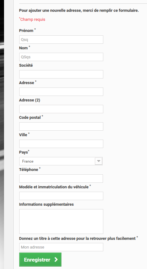 Funcup Posted February 25, 2015 Author Share Posted February 25, 2015 Bonjour, Merci de vos compliments et remarques. En ce qui concerne les cgv, j'ai effectivement laissé les conditions d'envoi de colis car il est prévu, si cette activité fonctionne, la possibilité d'offrir un cadeau physique (une ctbox) et donc une gestion d'envoi et livraison. Pour le type de véhicule et l'immatriculation, une fois enregistré (email, mot de passe), le formulaire vous demande vos coordonnées et se termine par le champs "Modèle et immatriculation du véhicule". Bien cordialement Link to comment Share on other sites More sharing options...