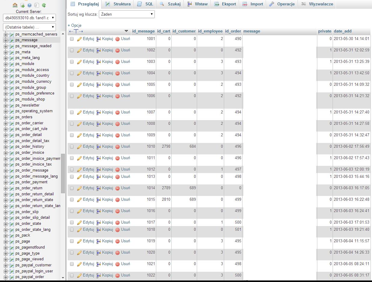 Otóż wchodząc w Zamówienie jakieś na samym dole jest box Messages, I tu jest problem że pojawiają się w nim stare wiadomości, nie mam pojęcia dlaczego jest taka sytuacja :
