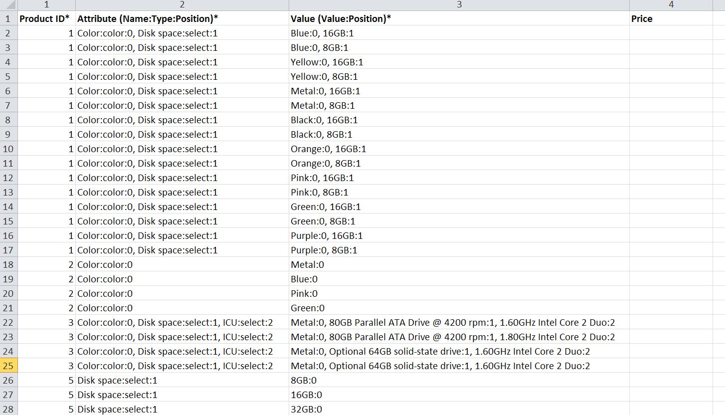 hansjuerg.arnold Posted February 25, 2015 Share Posted February 25, 2015 (edited) Hallo zusammen Ich tue mich schwer mit dem CSV - Import von Kombinationen. Zur Ausgangslage: im Shop (1.6.0.9) soll Holz in 6 Farben 3 Oberflächen 3 Längen zur Auswahl stehen. Der Preis für jede dieser Varianten ist unterschiedlich. Da man ja keinen Export mit allen Varianten machen kann, habe ich mir die Muster - Importdatei, welche PS zur Verfügung stellt genommen, mit der Idee, dass ich die einzelnen Varianten anstelle des Kombinationsgenerators via CSV einlesen kann. Somit möchte ich lediglich die Varianten umd den <Preis> ergänzen und importieren. Nun verstehe ich aber die Notation der Muster - Importdatei (im Anhang) nicht. Kann mir jemand sagen, was hier mit Attribute (Name:Type:Position)* Value (Value:Position)* Vielen Dank Hansjürg Edited February 25, 2015 by hansjuerg.arnold (see edit history) Link to comment Share on other sites More sharing options...