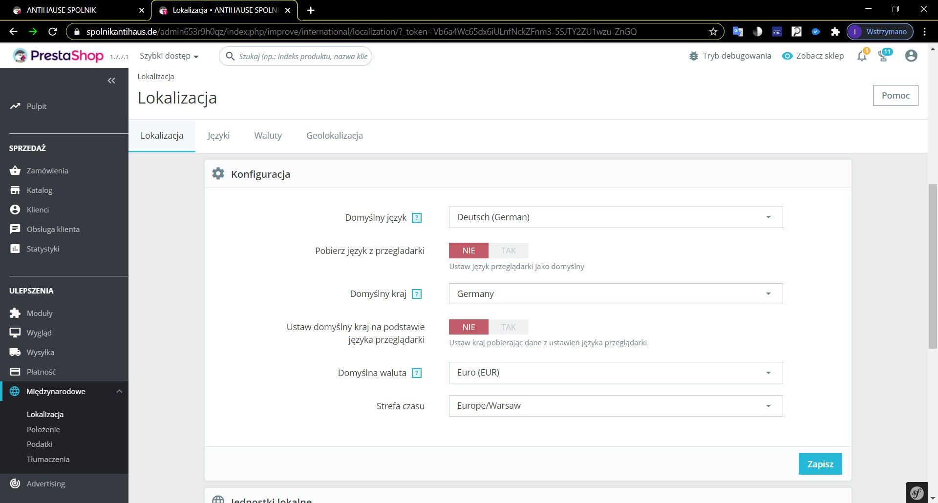 Witam. Mam dwa problemy. Pierwszy jest następujący, jeżeli użytkownik dokona zakupu w polskie walucie i dokona płatności za pomocą przelewu to otrzyma dane do wpłaty które są ustalone w module. Zaś jak wybierze euro to otrzyma te same dane do wpłaty prawda? I tutaj mam właśnie pytanie jak to zmienić aby wyświetlało inne dane do wpłaty prz innej walucie, wystarczy chociaż aby był inny numer konta i podany IBAN oraz BIC.