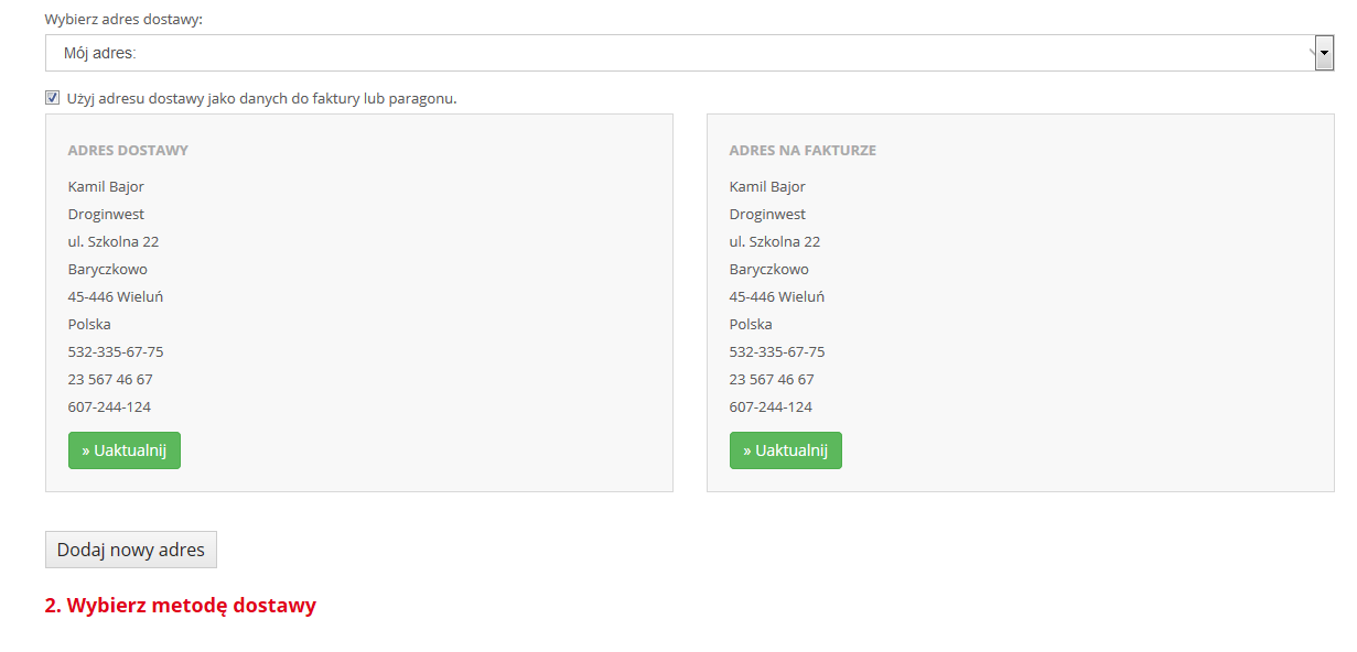 Zmiana kodu w adresie dostawy i adresie do faktury