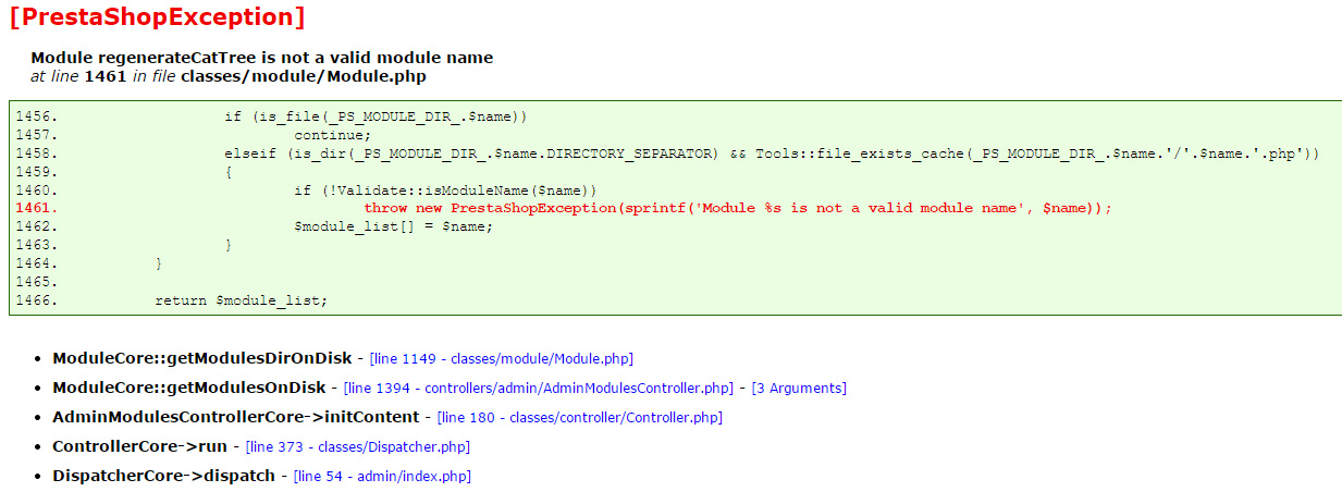 ramonjacas Posted March 2, 2015 Share Posted March 2, 2015 Tras actualizar Prestashop a la versión 1.6.0.13, al acceder a la sección de módulos en el backoffice, lanza el siguiente error de excepción. Adjunto pantallazo. Si se elimina dicho módulo puedo acceder a módulos pero esa no puede ser la solución puesto que supongo que al añadir categorías no se regenerará bien el árbol de categorías. ¿Ideas? Module regenerateCatTree is not a valid module name Link to comment Share on other sites More sharing options...