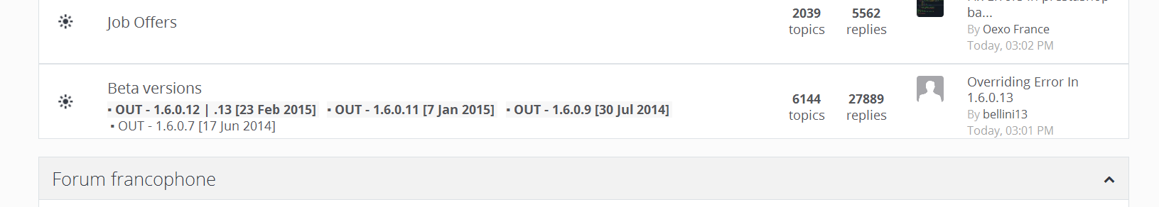 Whiley Posted March 3, 2015 Share Posted March 3, 2015 @kulli hier mal der Link zu deinem Alpa-Versions-Artikel aus 2013: https://www.prestashop.com/blog/de/so-erstellen-sie-ein-prestashop-modul-im-v1-6-dashboard-plug-in/ Hier der Link zu deiener Beta-Versions-Theorie: https://www.prestashop.com/forums/forum/252-beta-versions/?modfilter=unapproved In diesem Forum kann man sich über Beta-Versionen austauschen - vorzugsweise solange es auch Beta-Versionen sind. Wenn sie dann von Prestashop "released" also als Final-Version freigegeben werden und somit keine Beta-Versionen mehr sind bleiben die Posts natürlich dort in dem Forum trotzdem erhalten. Auch im engl. Forum hat das schon zu Missverständnissen geführt: https://www.prestashop.com/forums/topic/420987-is-ps16013-production-ready/?do=findComment&comment=1986719 Also die 1.6.0.13 ist nach Prestashop Verständnis eine Finale-Version Ob es sinnvoll ist diese tatsächlich produktiv einzusetzen mag jeder für sich selbst entscheiden. Wir haben die allermeisten Shops in der Vers. 1.5.6.2 am Laufen aber auch ein paar 1.6.0.9er ohne nennenswerte Probleme. Grüsse Whiley Link to comment Share on other sites More sharing options...