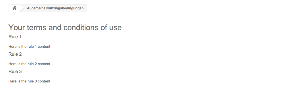 mahega Posted March 3, 2015 Share Posted March 3, 2015 Hallo Prestafreunde, ich habe ein eigenes privates Modul entwickelt und stehe jetzt noch vor einem Problem: In meinem Controller setze ich in der initContent() mein Template: $this->setTemplate(_PS_MODULE_DIR_ . $this->page_name . '/views/templates/front/mycustomtemplate.tpl'); Das funktioniert auch und wenn ich die Seite aufruft, wird alles korrekt angezeigt. Ich verstehe nur nicht, warum im Breadcrumb dieser Seite nur das "Home"-Symbol angezeigt wird: Eigentlich erwarte ich, dass nach dem "Home"-Symbol auch noch der Titel meines Moduls angezeigt wird, wie es z.B. der Fall ist, wenn ich eine Seite wie die Allgemeinen Geschäftsbedingungen aufrufe: Ich wäre euch sehr dankbar, wenn ihr mir dabei helfen könntet, dieses letzte kleine Problem zu lösen! MfG Matthias Link to comment Share on other sites More sharing options...
